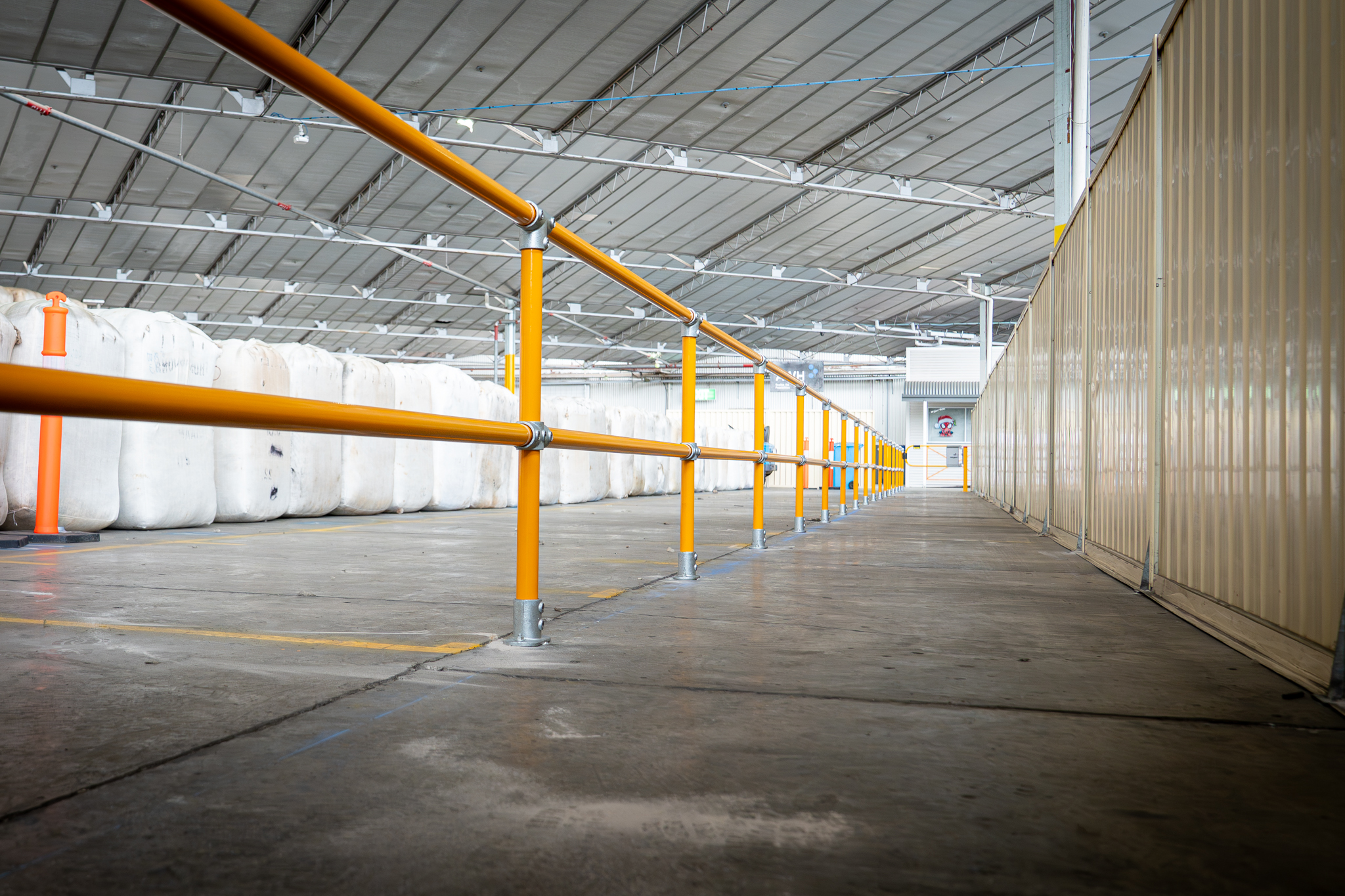NoWeld Industrial Guardrail and Handrail SystemOver 80 metres of NoWeld Industrial Guardrail and Handrail were installed to clearly define pedestrian walkways and physically separate staff from active forklift operating zones.