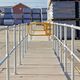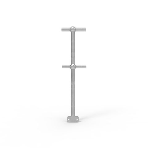Description: Tubular handrail system Size: Post 48.3mm O.D. (40N.B.) Handrail 42.4mm O.D. (32 N.B.) Kneerail 33.7mm O.D. (25 N.B.) Material & Finish: Hot dip galvanised and Galvanised & Powder Coated Safety Yellow. Height: 1017mm ground to handrail centre. 560mm ground to kneerail centre. Spacing: Max post spacing 2 metres centre to centre. -
